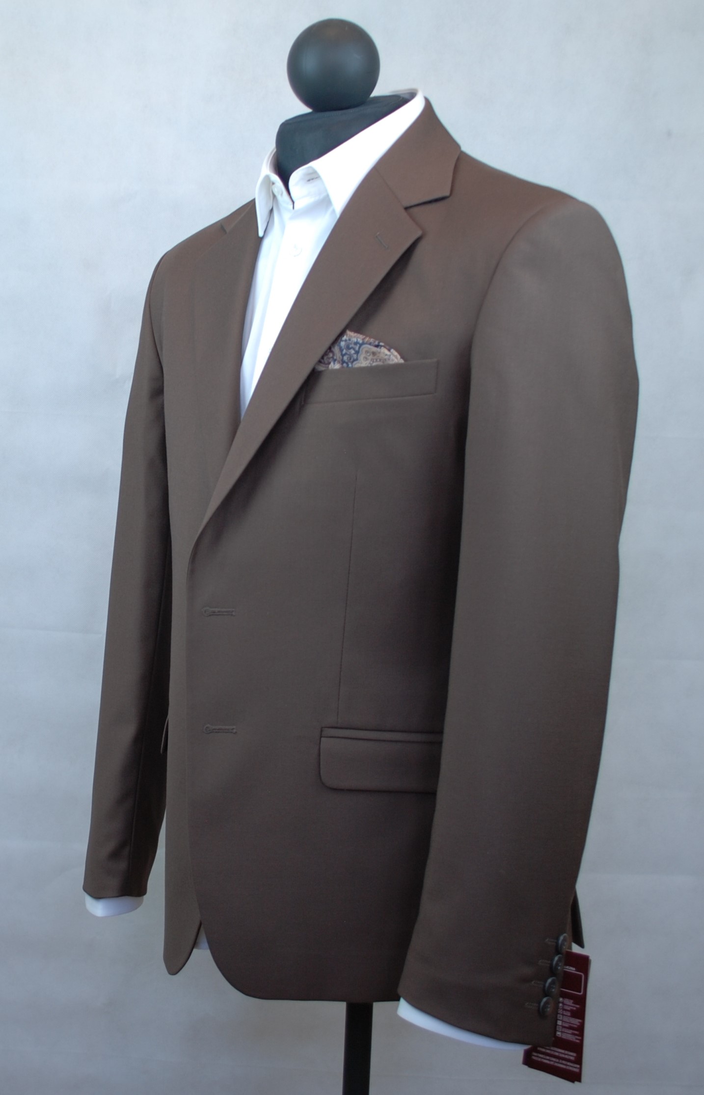 Garnitur męski w modnym fasonie. Przeznaczony dla panów ceniących przede wszystkim nieskrępowany komfort noszenia. Piękny twarzowy odcień delikatnego brązu, doskonale komponuje się z wieloma kolorami koszul i dodatków. Lekko wyszczuplony krój to jednocześnie klasyka i wygoda. Polski producent zapewnia wysoką jakość wykonania i właściwy dobór tkanin.
