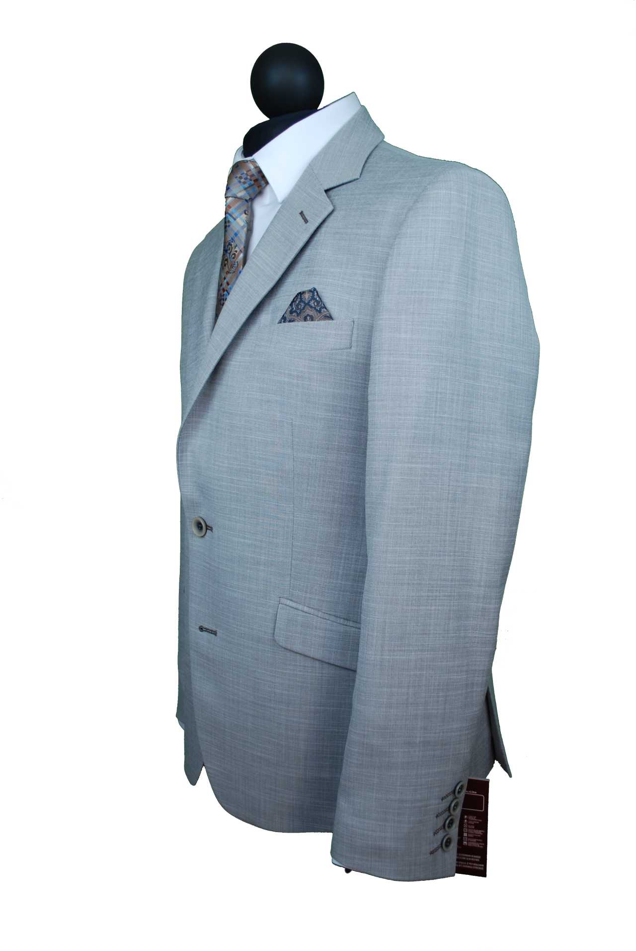 Garnitur męski w modnym fasonie. Przeznaczony dla panów ceniących przede wszystkim nieskrępowany komfort noszenia. Lekko wyszczuplony krój to jednocześnie klasyka i wygoda. Polski producent zapewnia wysoką jakość wykonania i właściwy dobór tkanin.