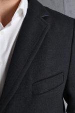 Klasyczny płaszczyk długości 3/4 z małymi klapami i rozcięciem z tyłu. Taliowany, ocieplony w górnej części, zapinany na 3 guziki. Rękawy zakończone rozcięciem z czterema guzikami. Wykonany z wełny włoskiej w wykończeniu antypilingowym.